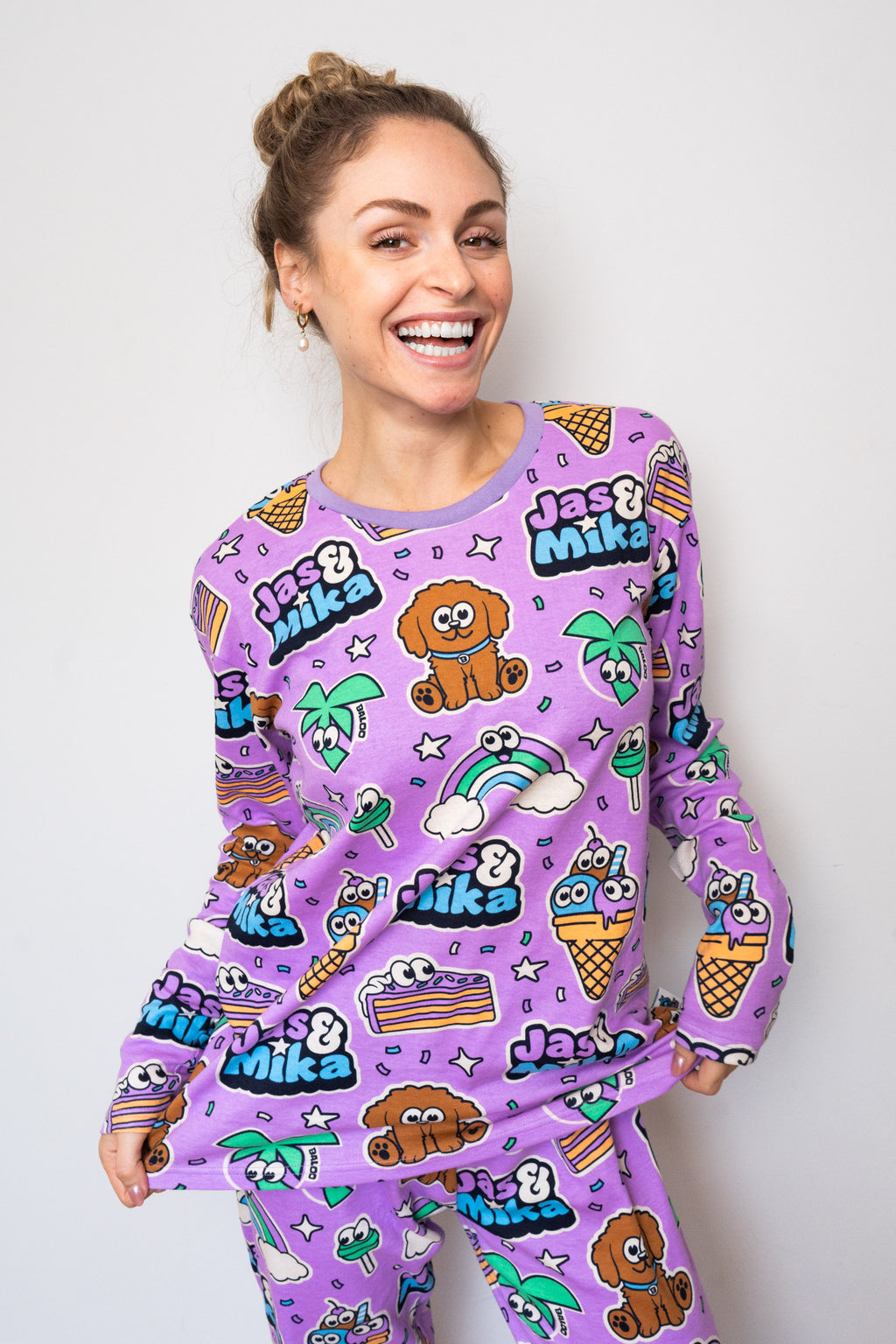 Oplev maksimal hygge og komfort med dette pyjamas sæt fra Youtube-parret Jas og Mika! Dette nattøj er designet med fokus på stil, komfort og kvalitet, perfekt til rolige aftener og drømmende nætter. Sættet består af en blød og let pyjamas-trøje samt matchende pyjamas-bukser, der tilsammen giver en afslappende og hyggelig følelse – Jas og Mikas 110% hygge garanti!
